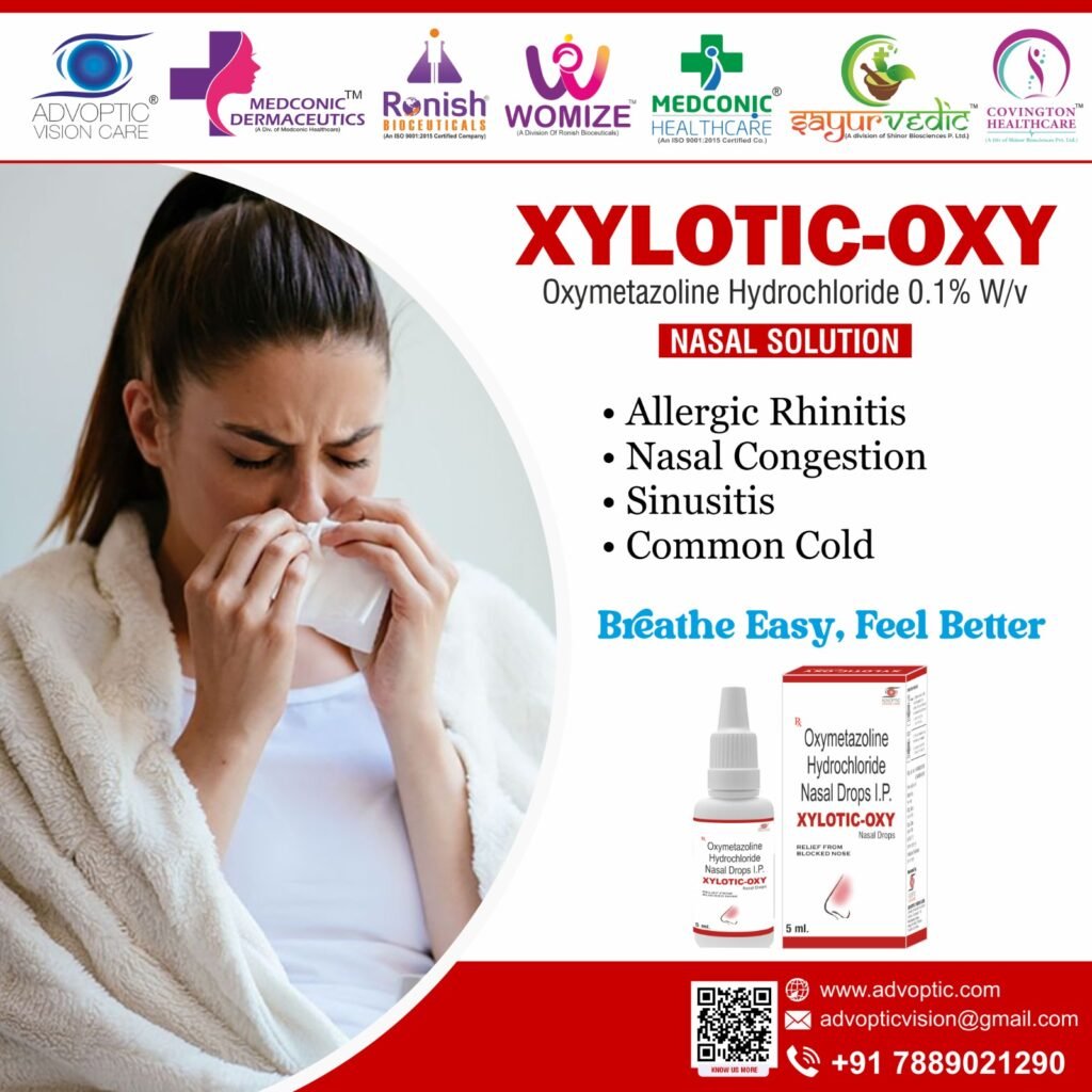 XYLOTIC OXY – OXYMETAZOLINE HYDROCHLORIDE 0.1% NASAL SPRAY is a fast-acting nasal decongestant that helps relieve a blocked nose caused by colds, sinusitis, or allergies. It provides instant relief by narrowing the blood vessels in the nasal passages, reducing swelling, and making breathing easier.