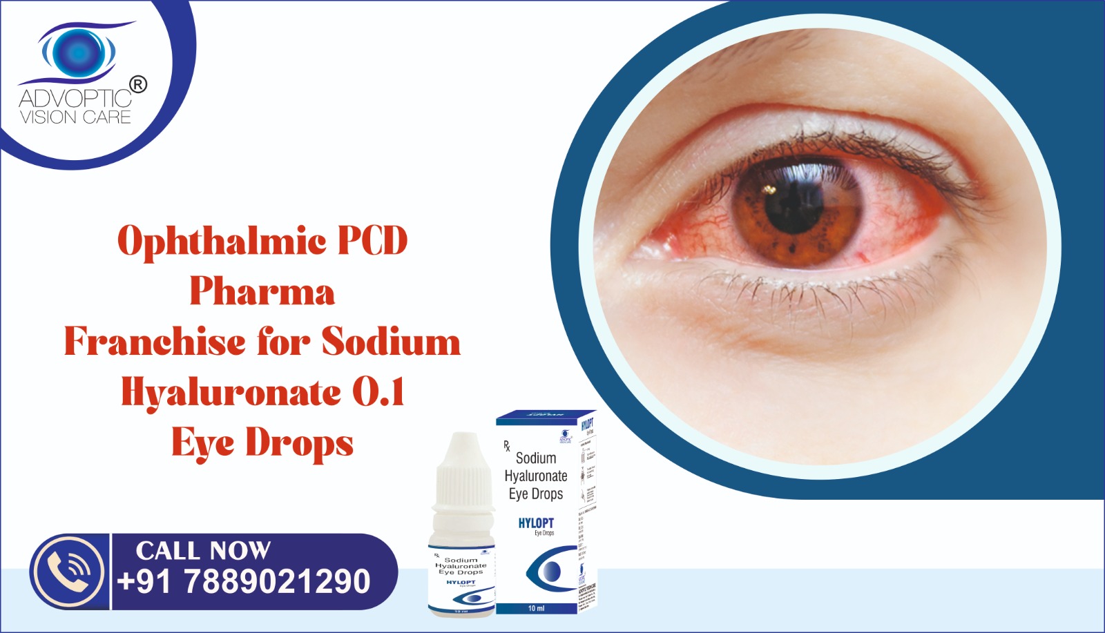 Starting a business with HYLOPT – SODIUM HYALURONATE 0.1 EYE DROPS offers strong potential due to rising demand and doctor preference. With quality assurance, marketing support, and trusted branding, Advoptic Vision Care offers a reliable platform for growth in the ophthalmic segment as the Ophthalmic PCD Franchise Company in India.