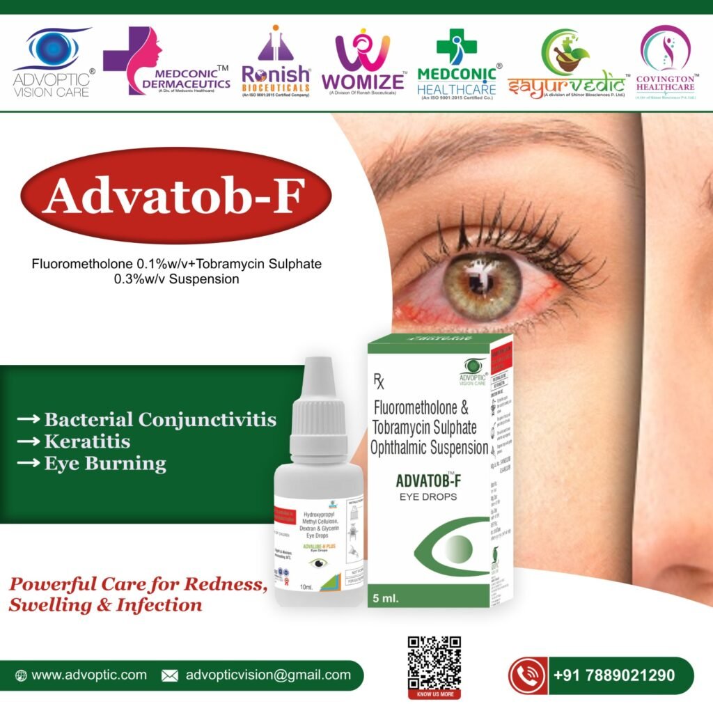 ADVATOB F – TOBRAMYCIN SULPHATE and FLUOROMETHOLONE EYE DROPS are used to treat bacterial eye infections, reduce swelling, redness, and post-surgery inflammation.